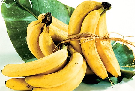 „Pane učiteli, vy ty pětky rozdáváte jako banány.“ „Však jste taky opice.“ Tohle je jedna z velmi povedených komických scenérií hodin francouzštiny. Ale zpět od vychrtlých požitkářů k banánům. Rostou téměř ve všech tropických oblastech. K nám se dovážejí ještě nezralé, ale na těchto plodech je báječné, že jsou schopny dozrát i mimo rostlinu. Poníci a kozy je milovali. Stačilo mezi ně hodit pět zralých banánů a slupli je jedna dvě. Dokonce i se slupkou☺. Cílovou skupinou konzumentů by měli být starší a nervózní koně. Obsahují totiž hodně draslíku, hořčíku a fosforu. Draslík zklidňuje nervovou soustavu, podporuje správnou činnost svalů. Hořčík příznivě působí proti nadměrnému pocení. Kromě toho draslík napomáhá udržení normálního krevního tlaku (U lidí, takže pro koně bude mít desetkrát menší účinek.). Také obsahují velké množství přírodního cukru, který rychle přechází do krve. Proto jsou vhodným zpestřením stravy závodních koní. Jestliže je nehodláte koním loupat, pořádně je umyjte, protože se pěstují v rozvojových zemích, kde se hojně používají pesticidy. Když dostanete nervózu před písemkou, dejte si banán, který i navíc stimuluje mozkovou činnost☺.