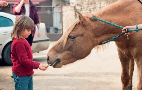 Vzpomínám si na pěknou příhodu. Sousedé měli mladou tažnou klisnu. Chovali ji samostatně, což jak určitě všichni dobře víte, není zrovna ideální. Hrozně toužila po společnosti. Jendou jsem šla k ní do ohrady v oblečení, které jsem měla na sobě v jezdecké škole. A měli byste vidět, jak za mnou pořád chodila, dloubala mi do ramena, jakoby čekala, že mi z rukávů vypadnou jiní koně. Zapamatovala si mě jako koňskou kamarádku a od té doby se ke mně chovala vstřícněji přátelštěji než k ostatním lidem a dokonce mi dovolila zdolat její neobsedlý hřbet jako prvnímu člověku (Mouchy se přece vozily běžně, ne?☺).
